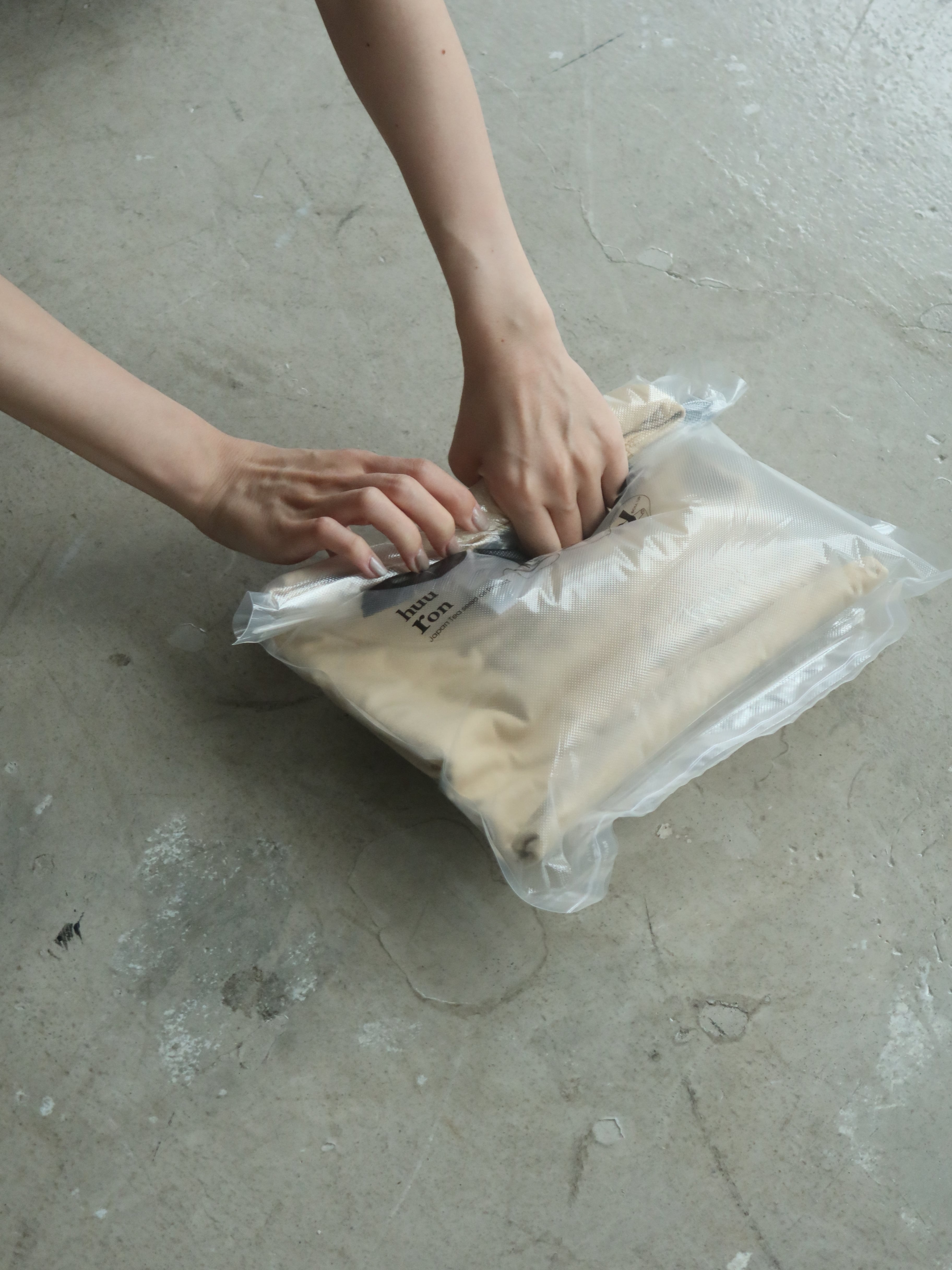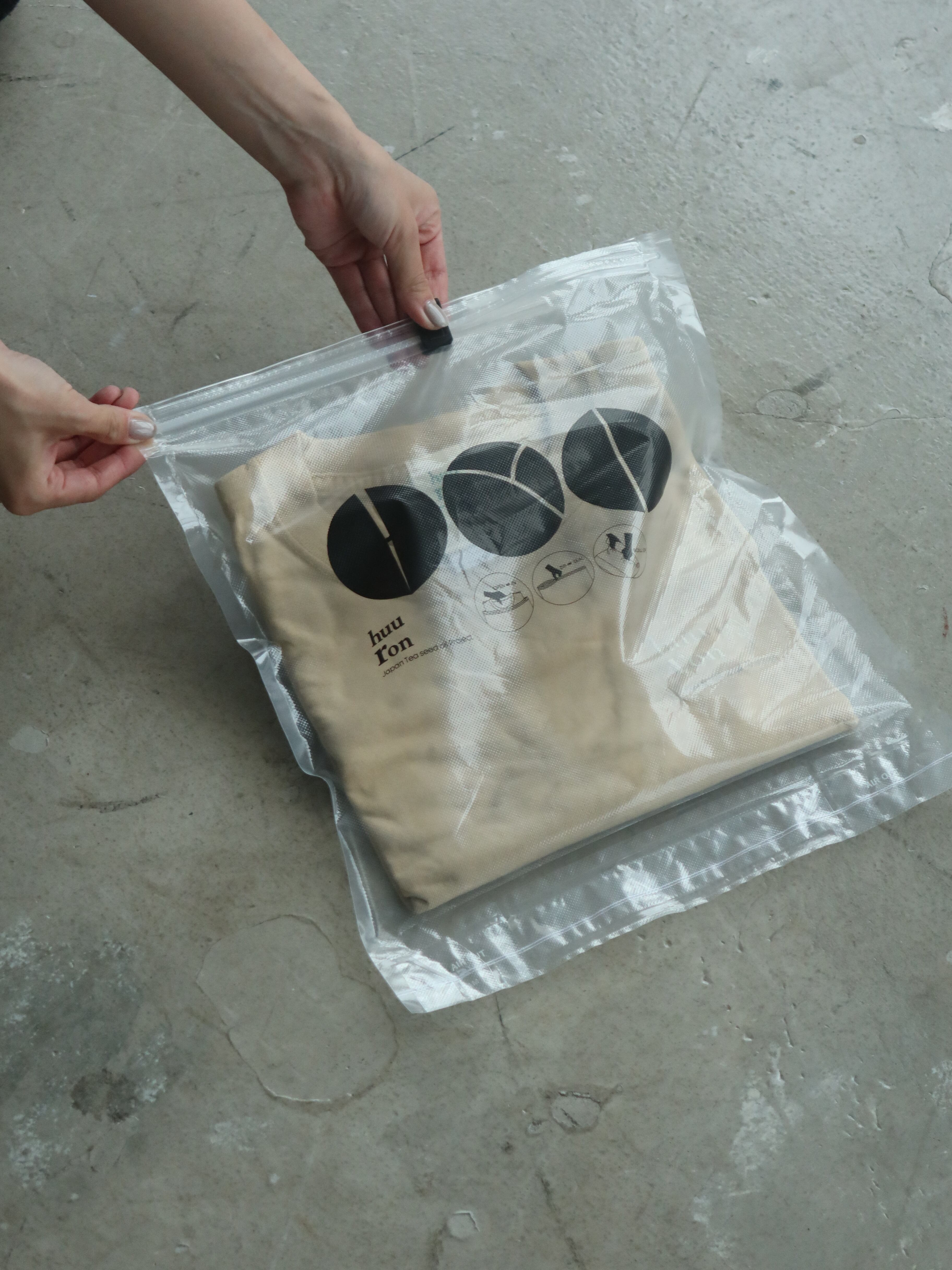 1枚でルームウェアや作業着として。圧縮袋付きなので旅行先に持って行ったりなど、お茶でも飲みながら、どの場面で着てみようか?と考えてみてください~