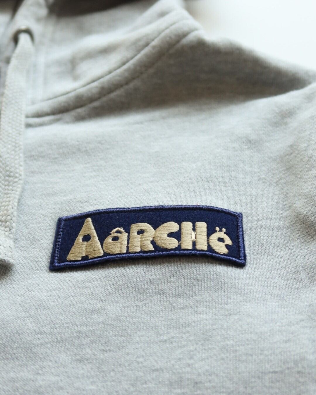 シンプルなWZIPの裏毛のパーカーに、国内で生産したAâRCHë オリジナルワッペンを添えました。ワンマイルウェアにぴったりな一枚です。