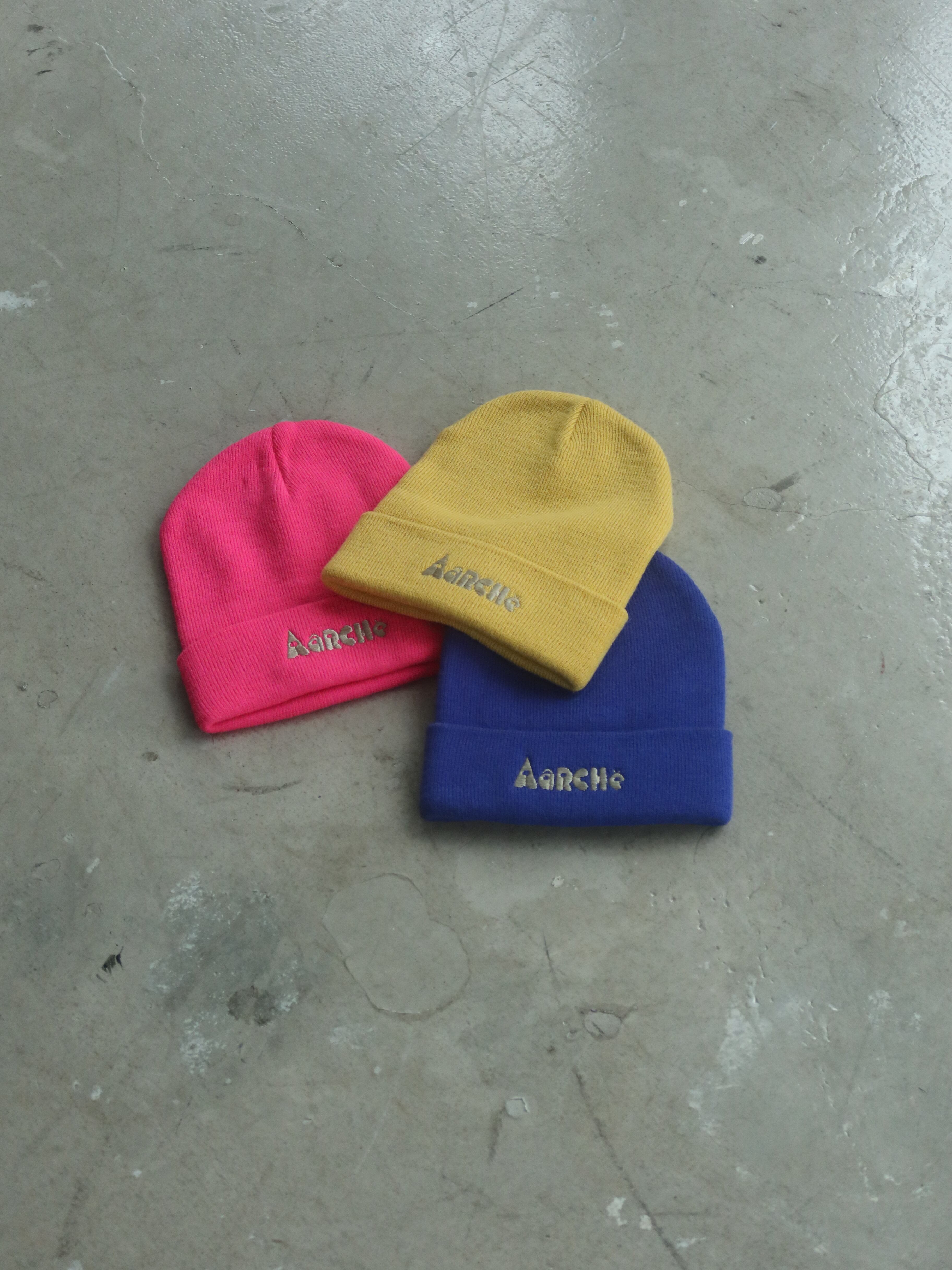 豊富な色展開のニット帽に国内でAâRCHë のオリジナルロゴを刺繍しました。シンプルなデザインで使いやすく、お買い物やお散歩に是非身につけてみてください。