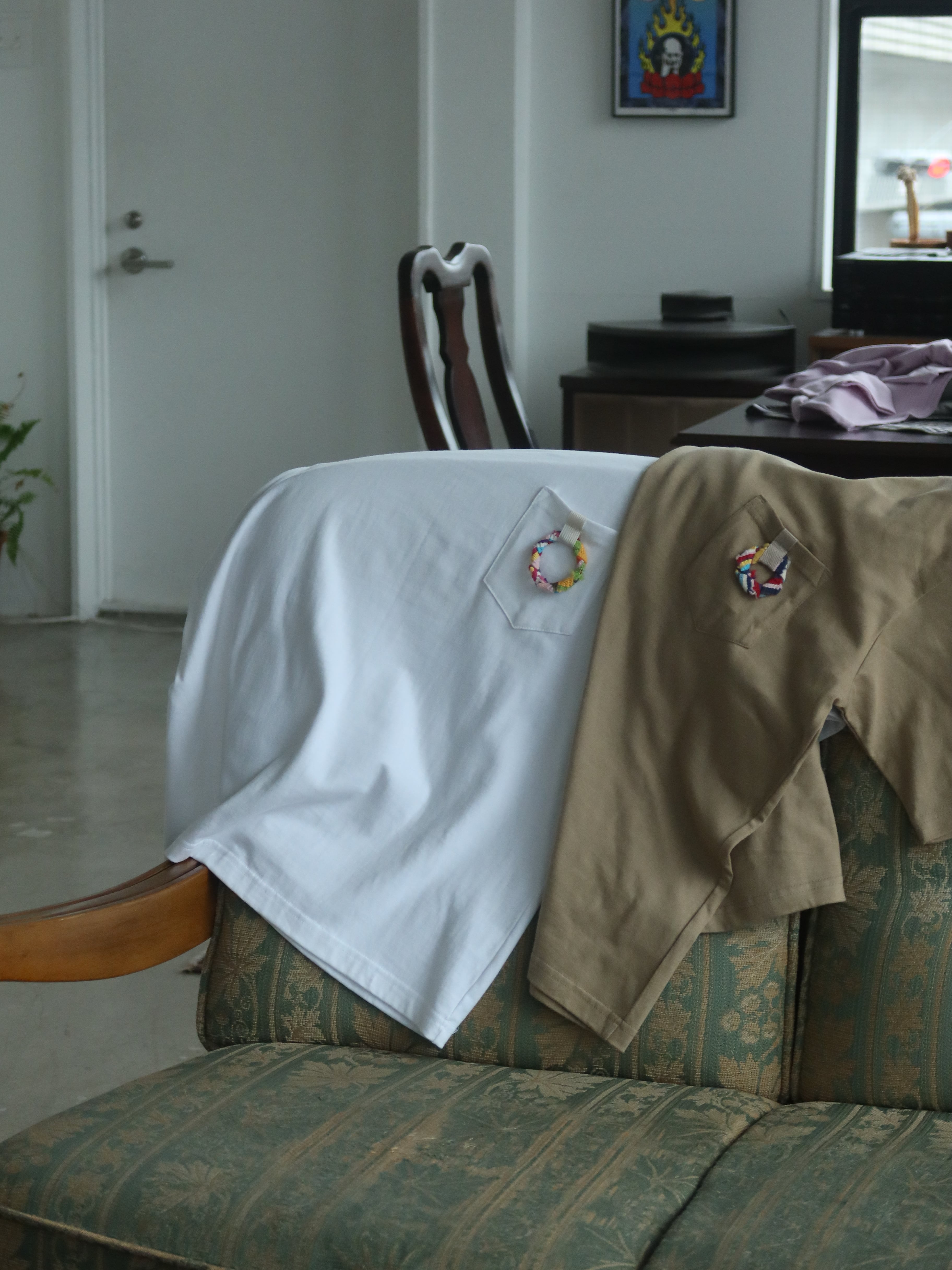 シンプルな胸ポケット付きTシャツに、ワンポイントで「sawori Ring」を施しました。ワイドシルエットでゆるりと着用していただけます。