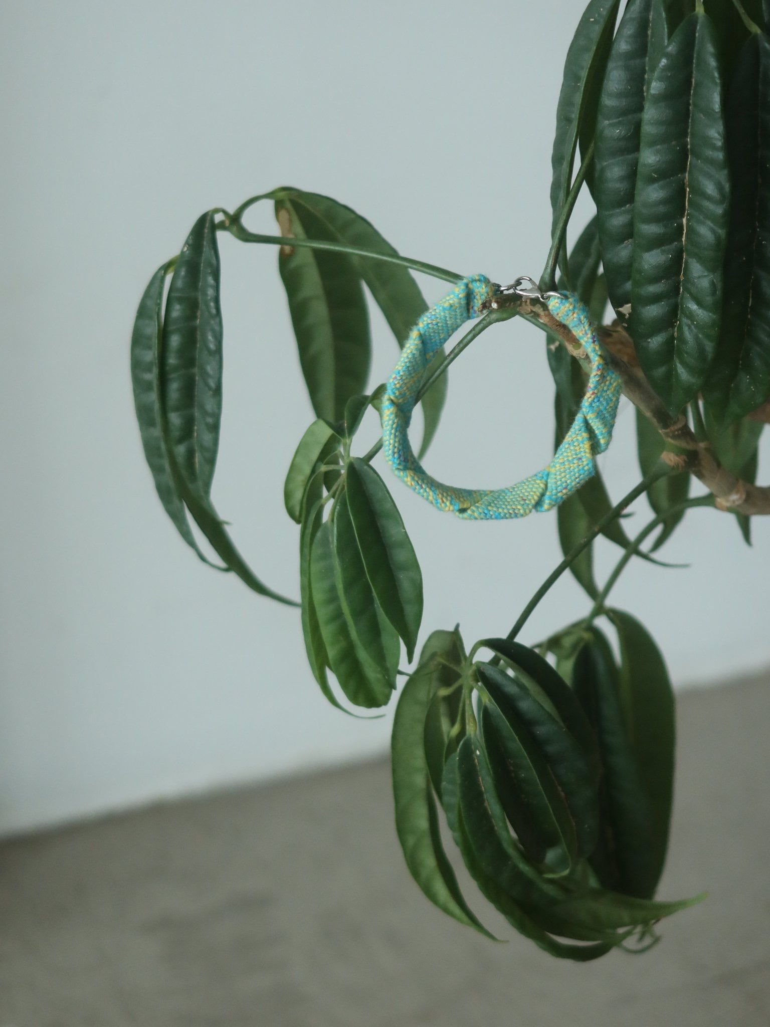 様々な生地を活用した色んなバリエーションのミサンガ。デザインも色も一期一会です。