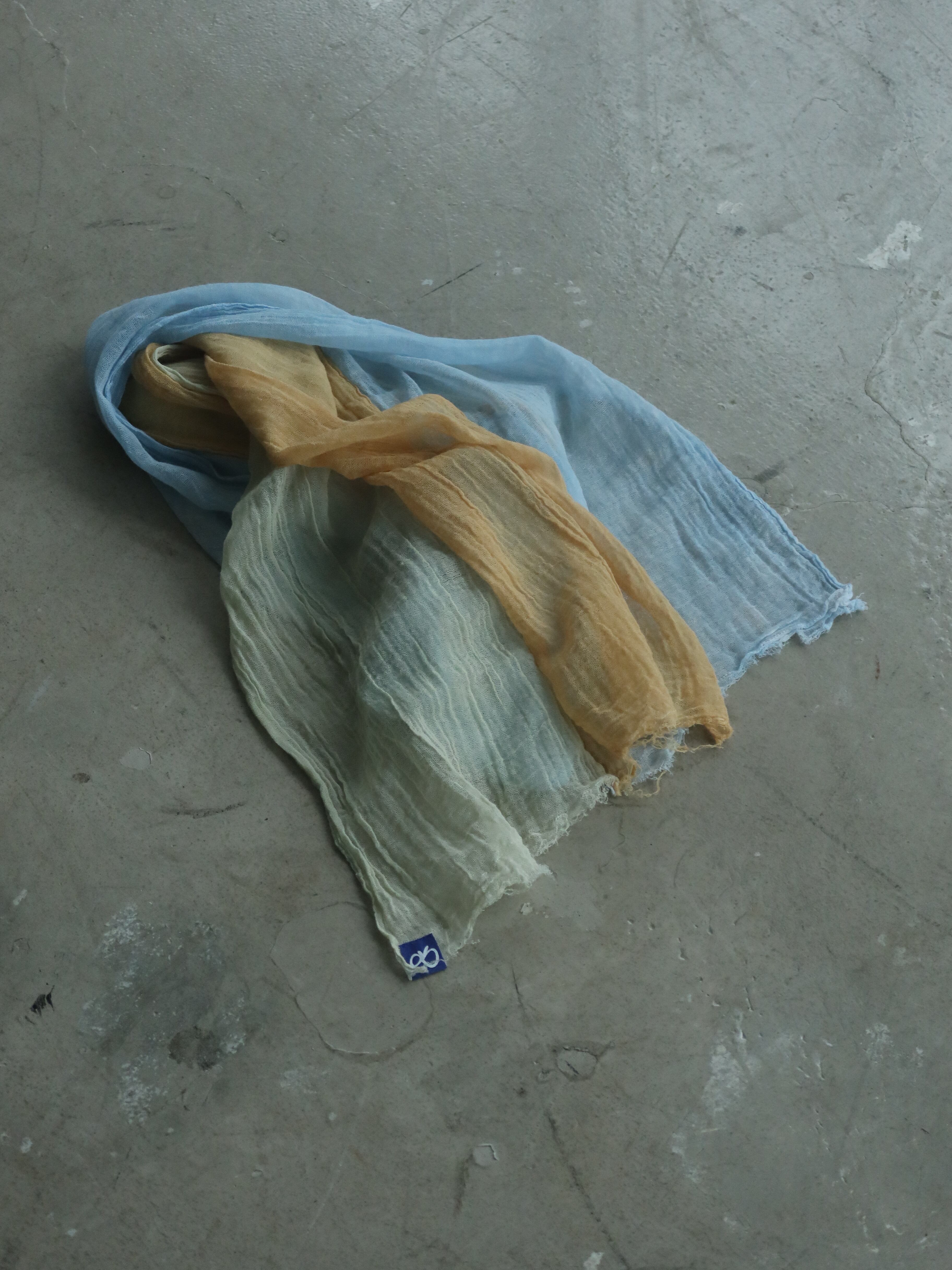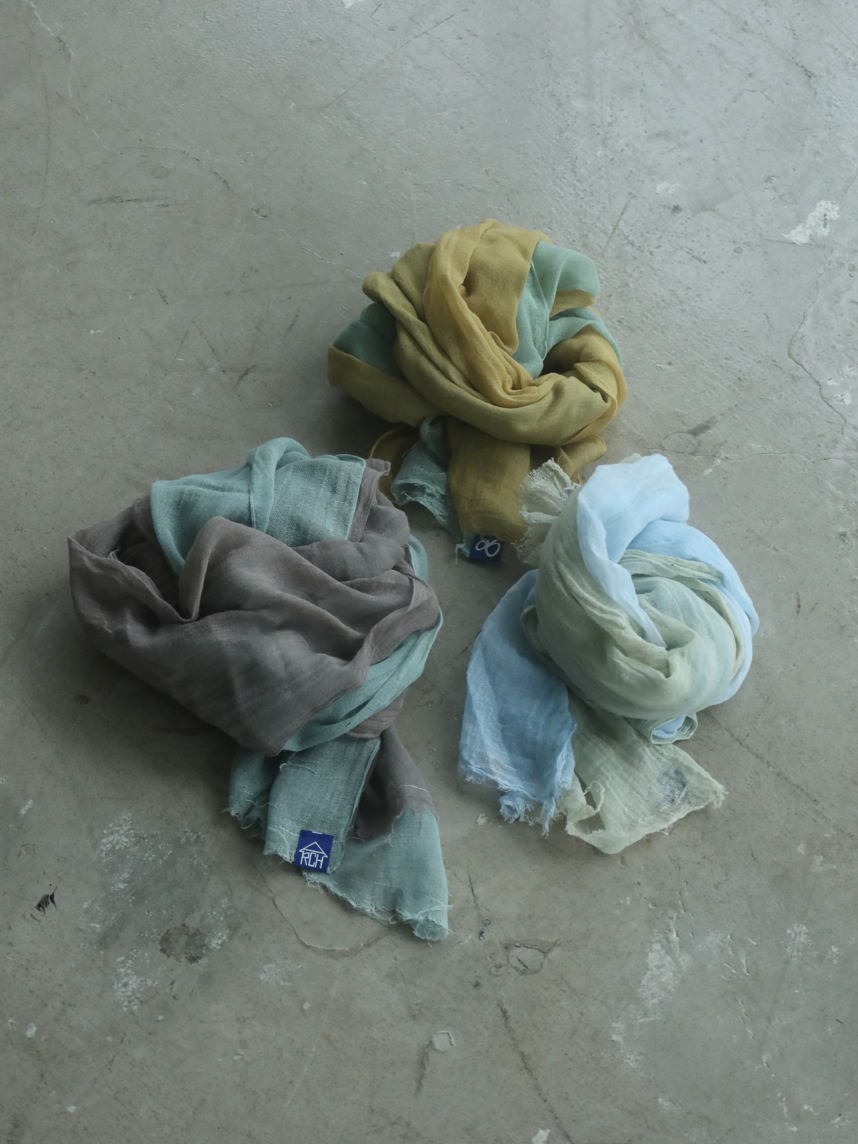 四条畷福祉会さんで育った植物や野菜たちで、薄手のガーゼを染色していただきました。その色鮮やかなガーゼを3枚重ねてストールにしています。巻き方や位置で色味が変わるので、色んなバリエーションが楽しめます。*色味は季節や製作中の皆さまのテンションで決めていただいています。どんな色・デザインがくるかは届くまでのお愉しみ。